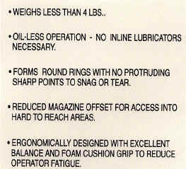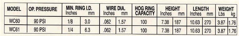 The WC60 & WC61 are used in the assembly of camoulflage netting, cages for small fur-bearing animals and the poultry industry. Also used in installing insulation around high temperature in-plant processing pipe.